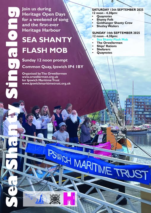 The Orwellermen will be performing @ 3.30 RNLI station and at the Moot Hall 5pm